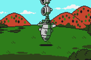 During the game, the shuttle is located in Peace Town, and can be entered anytime. Once the player collected all the engines, they would be allowed to leave the planet, leading to the ending.