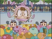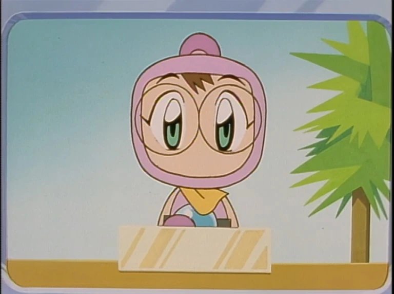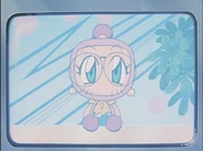 Caster Bomber is a bespectacled woman who works as a news anchor at a TV station in B-Da City. Normally, she is an adorable character with her audience in mind, but when she gets excited, her true nature sometimes comes out (in which case, she immediately covers it up with charm). In the last episode, when she saw Reporter Bomber escape, she ran away with the rest of the staff.