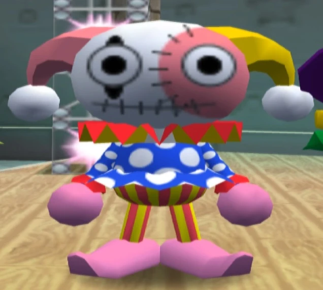 In his debut appearance in Bomberman Land, Dark Doll is met by Cheerful White and his companions in the Tower of White Zone where he is challenged to compete in a classic boss fight. It takes 3 hits to defeat Dark Doll. He neither attacks nor dodges the attacks from other players, but he makes up for it by bowing down which cause ten of his illusory clones to flicker all around the arena and lands in a random tilespace while white smoke comes out.