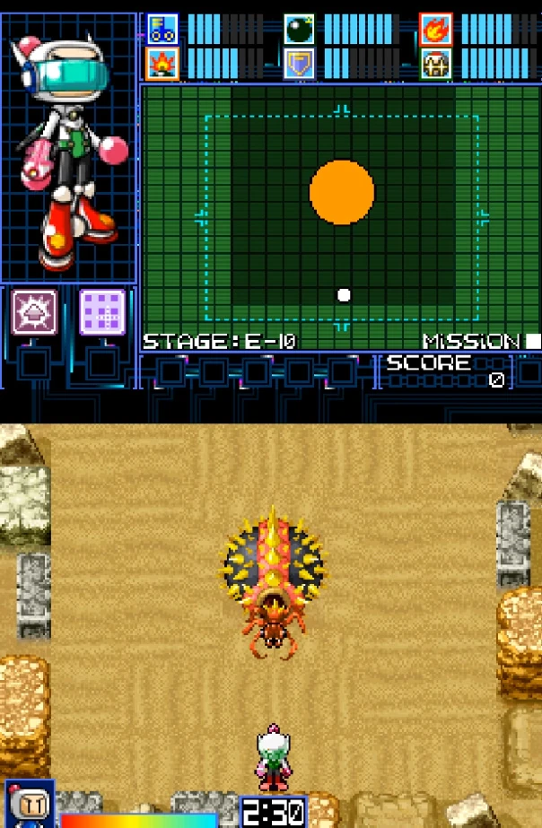 Doolbath is the fifth boss in Bomberman 2 (DS). It is fought on the Zone E - Desert.
