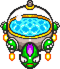 - Water - The boss releases two streams of water, which move between the blocks, seeking players. The water streams are five tiles long, and cannot move upward on the map. They will carry players and bombs with them upon contact. There can only be two streams of water on screen at any given time (for example, if one stream of water is still moving about when the boss performs the attack again, the boss will only release one stream). Gammebook shakes and sloshes around the water inside it before performing this attack.