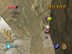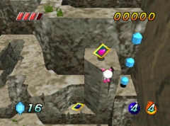 The main objective is to reach the end of the level by climbing upwards. There are mainly enemies that shoot fireballs in the level that can throw White Bomberman off of his course. Earning the target score can prove difficult due to the tricky jumps needed to get up. After completing this level, White Bomberman can access the next level Fog Route.