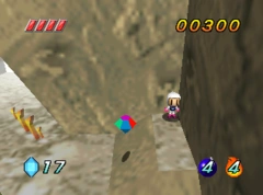 The Adok Bomb in this level can be found on a small, hidden ledge. White Bomberman must climb up halfway and drop down until he reaches it.