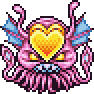 PrettyBalloon splits into eight small gels, which resemble Drops. The gels initially fly in each direction in a circle, with each cardinal gel being about four tile spaces from the middle of the split. These gels then proceed to move quickly, randomly changing directions. They are all invincible. Eventually, they will reassemble at some position and PrettyBalloon will change back into her squid form.