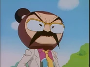 At some point in Episode 36, Dr. Shadow paid a visit to Gray Bomber at his laboratory. Still pretending to be friends with him, yet his visit was not really a friendly one, his only motive was to gather info about the B-Da Armors and other stuff Gray Bomber was working on. Gray Bomber, being naive, didn't noticed that at first and was very happy to see him and showed him all the stuff. After Dr. Shadow saw all what he needed to see, he then later revealed his true nature, and that he was in fact, working for the evil side.
